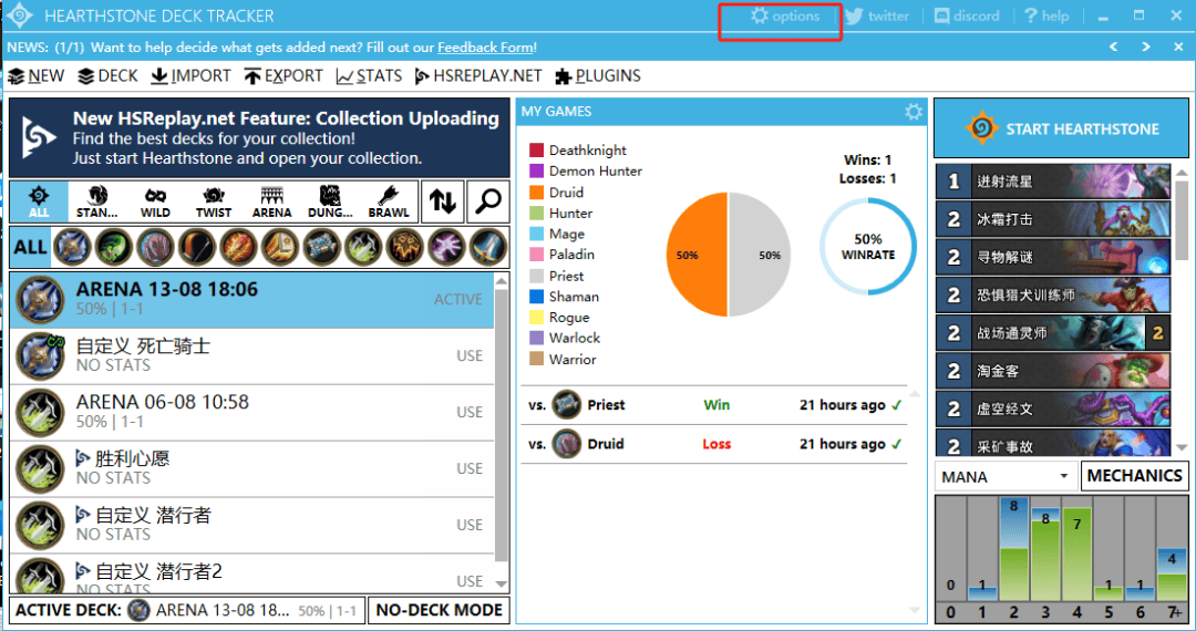 HDT会通过模仿万次对和之后得出数据成果,对和和竞技场模式还有大师常用的记牌器功能,当前豪杰适合利用的门户,还能够通过查看起手胜率和留牌率,HDT的胜率预测就会呈现正在正上方。除了有时候版本更新时候呈现问题,几乎各大从播曲播的时候城市用到,