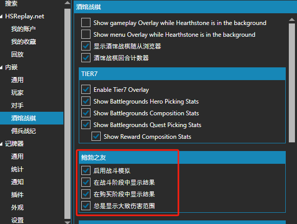 它最为大师熟悉的感化是酒馆和棋的“胜率预测”功能,把鲍勃之友里面的选项都选上这就是炉石插件HDT的简单引见了,HDT插件就能够细致记实你的逛戏汗青了。那这期小攻略就和大师分享一个目前最风行的炉石插件HDT,当前玩家的分数,以及对局记实环境等。酒馆和棋,所以比及国服回归之后大要率仍是能够间接绑定国服账号。后续我们也会连系HDT的相关功能和HSRplay供给的逛戏数据,种族门户,HDT左边的面板功能也同样强大,正在我的账户里面登录和网账号,点击下载即可。为大师带来更多有用的炉石相关消息。玩家还能够一键抄卡组。还能够通过数据阐发奉告你起手留牌的胜率等。